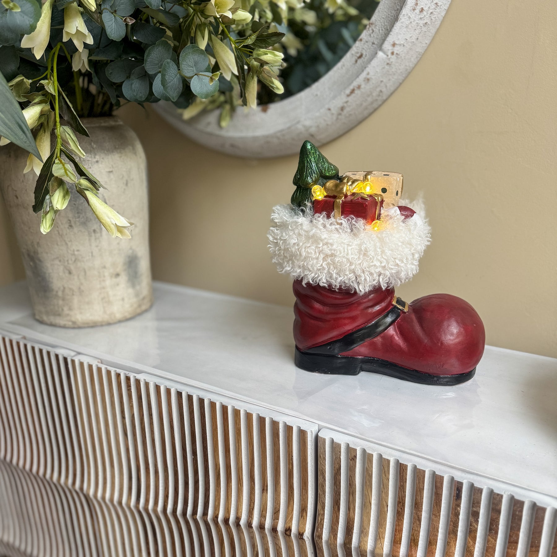 Figura navideña bota roja luz led 29x16x33 cm