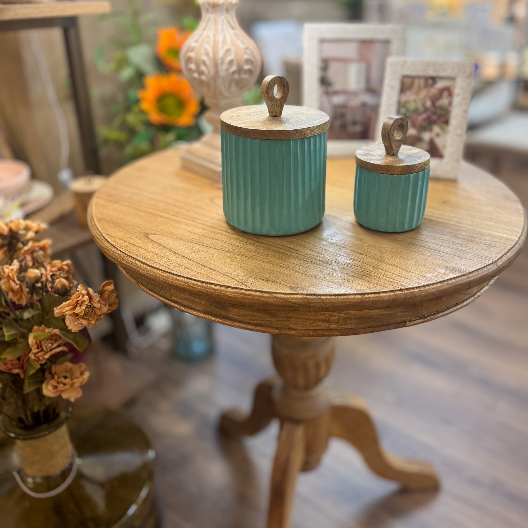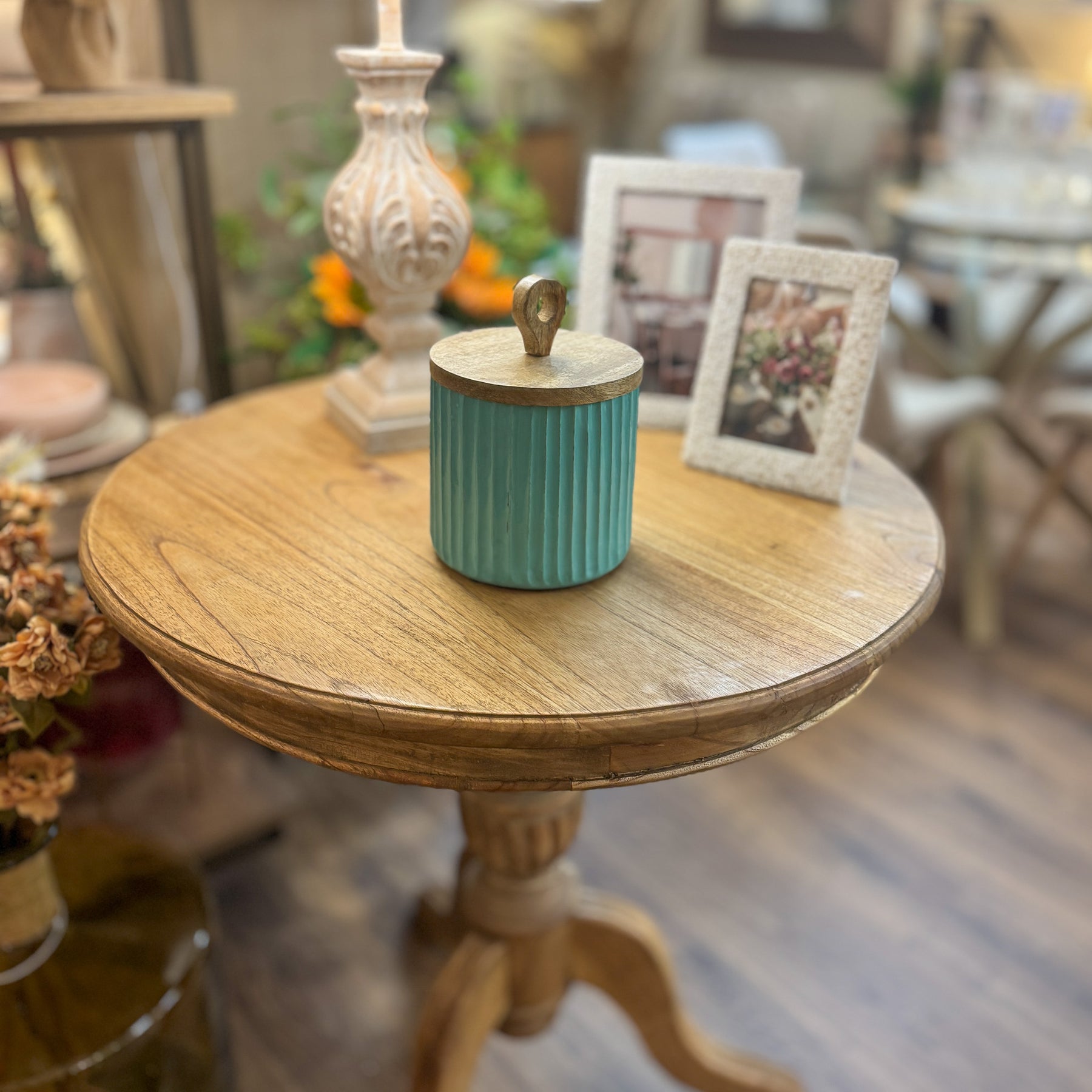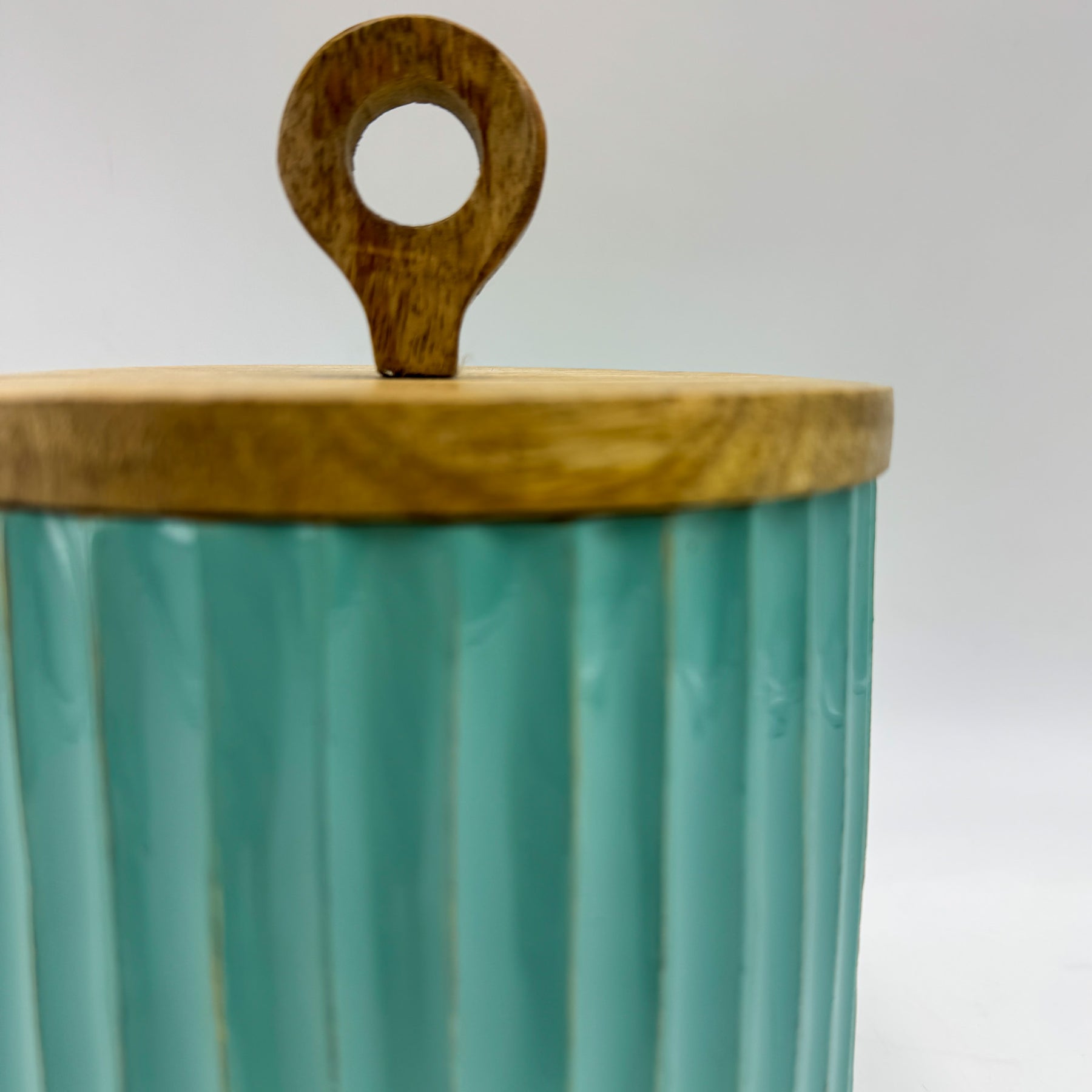 Ganar altura y un toque de color en tus estanterías es muy sencillo con este bote decorativo que destaca por su silueta estilizada y su acabado artesanal. Con unas medidas de 15x15x21 cm, esta caja decorativa de madera de mango cuenta con una tapa en tono natural coronada por un práctico tirador circular, un detalle que resalta la belleza de lo sencillo. Es el aliado perfecto para guardar esos tesoros cotidianos que quieres tener a mano pero fuera de la vista, manteniendo el orden con un objeto que derrocha personalidad en cada línea.