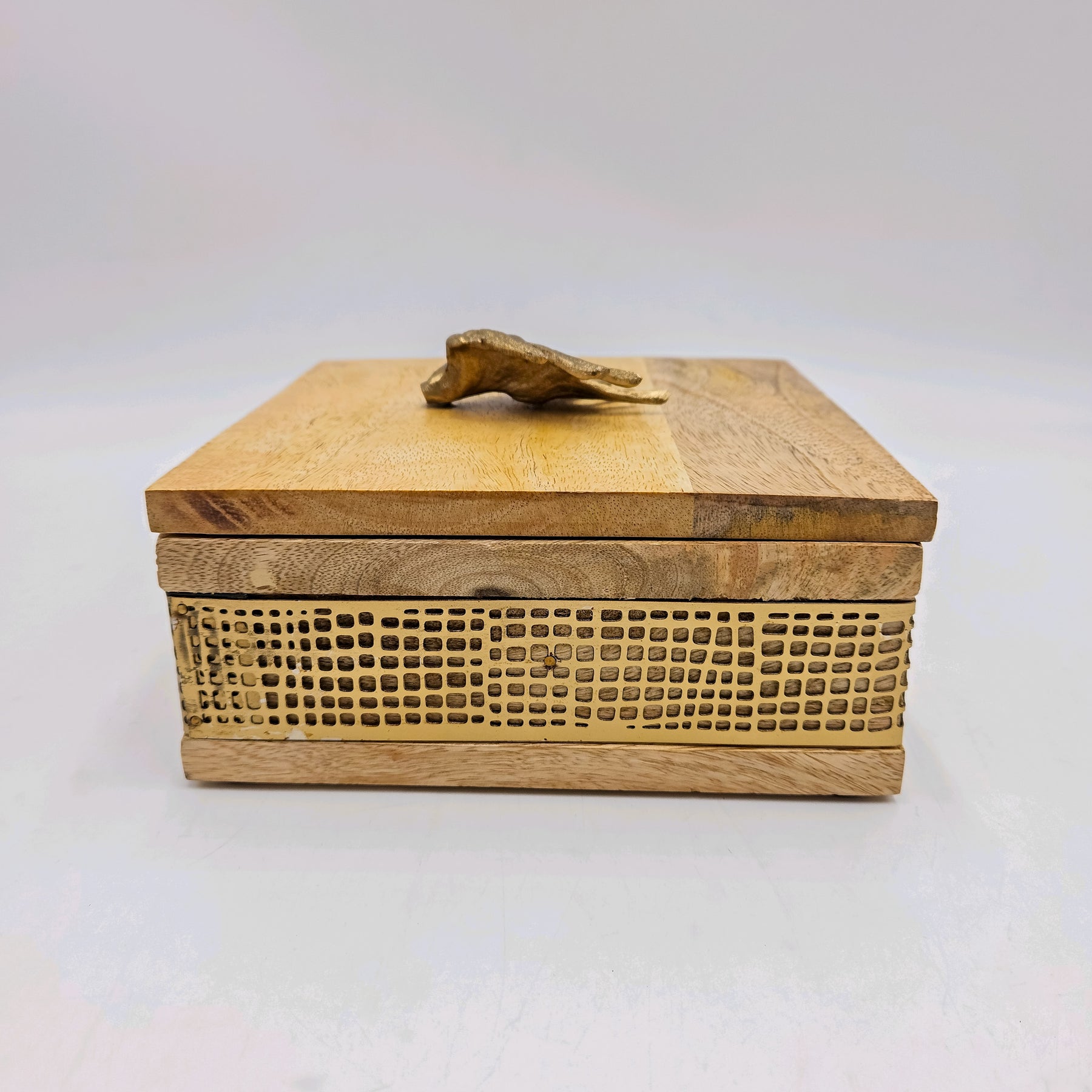 Caja madera y metal dorada cuadrada 17x9 cm