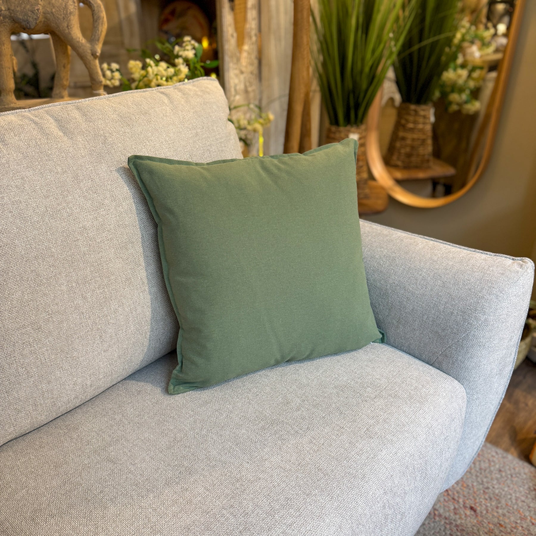 El diseño de este cojín verde prioriza la estética y la funcionalidad, incluyendo una cremallera discreta que permite desenfundarlo rápidamente para su mantenimiento. Su medida de 50x50 lo hace muy práctico, adaptándose a diferentes estilos, desde el minimalismo hasta ambientes de aire botánico. La fibra natural garantiza una transpirabilidad óptima, manteniendo un tacto agradable en cualquier época del año.