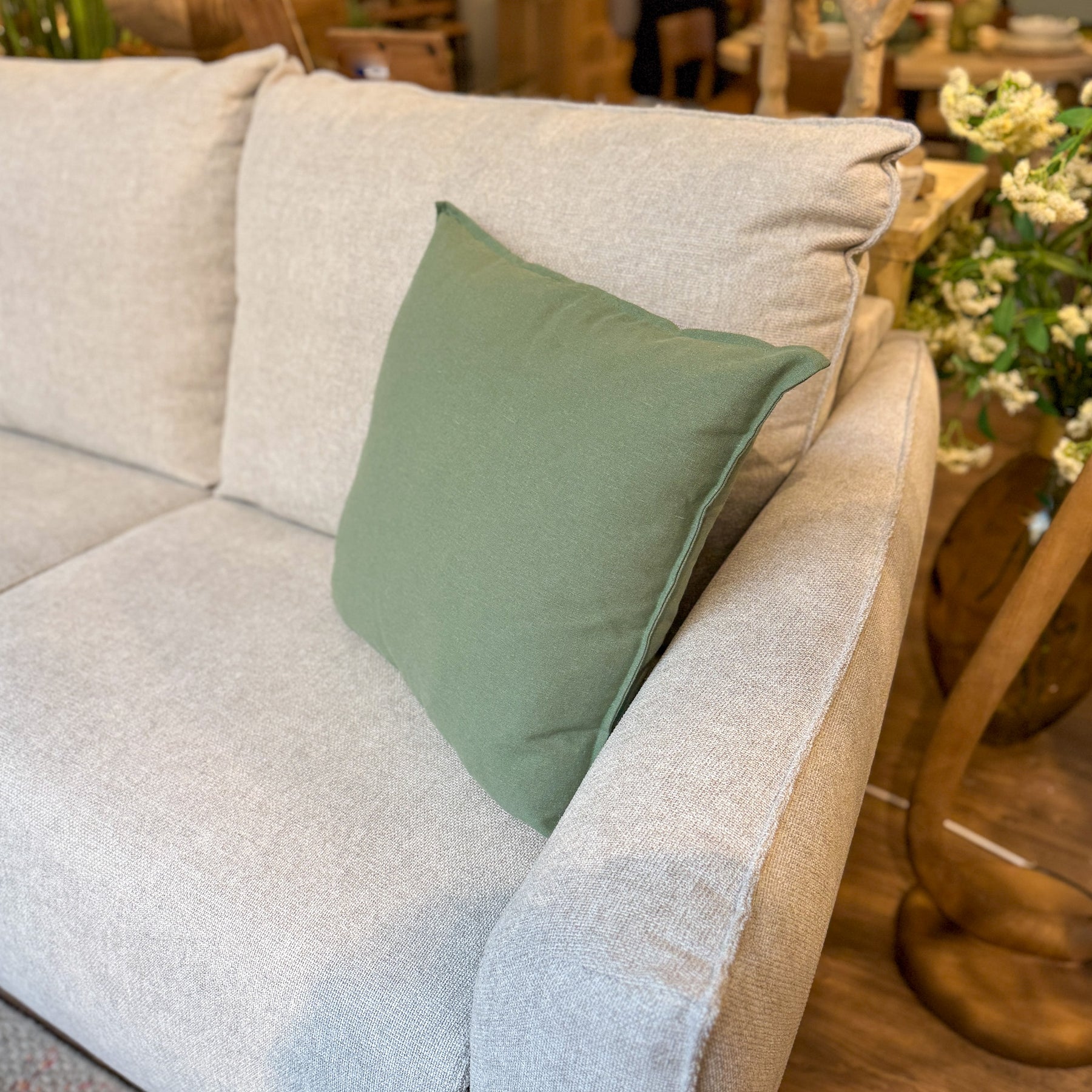 Este cojín de lino verde de 50x50 cm es una pieza que transmite toda la serenidad y frescura de la naturaleza en tu decoración. Su tonalidad verde oliva es perfecta para crear un punto de atención visual, aportando calma y bienestar a tu salón o zona de descanso. Fabricado en lino natural, este cojín cuadrado ofrece una textura orgánica que mejora con el uso, convirtiéndose en el aliado perfecto para un hogar auténtico.