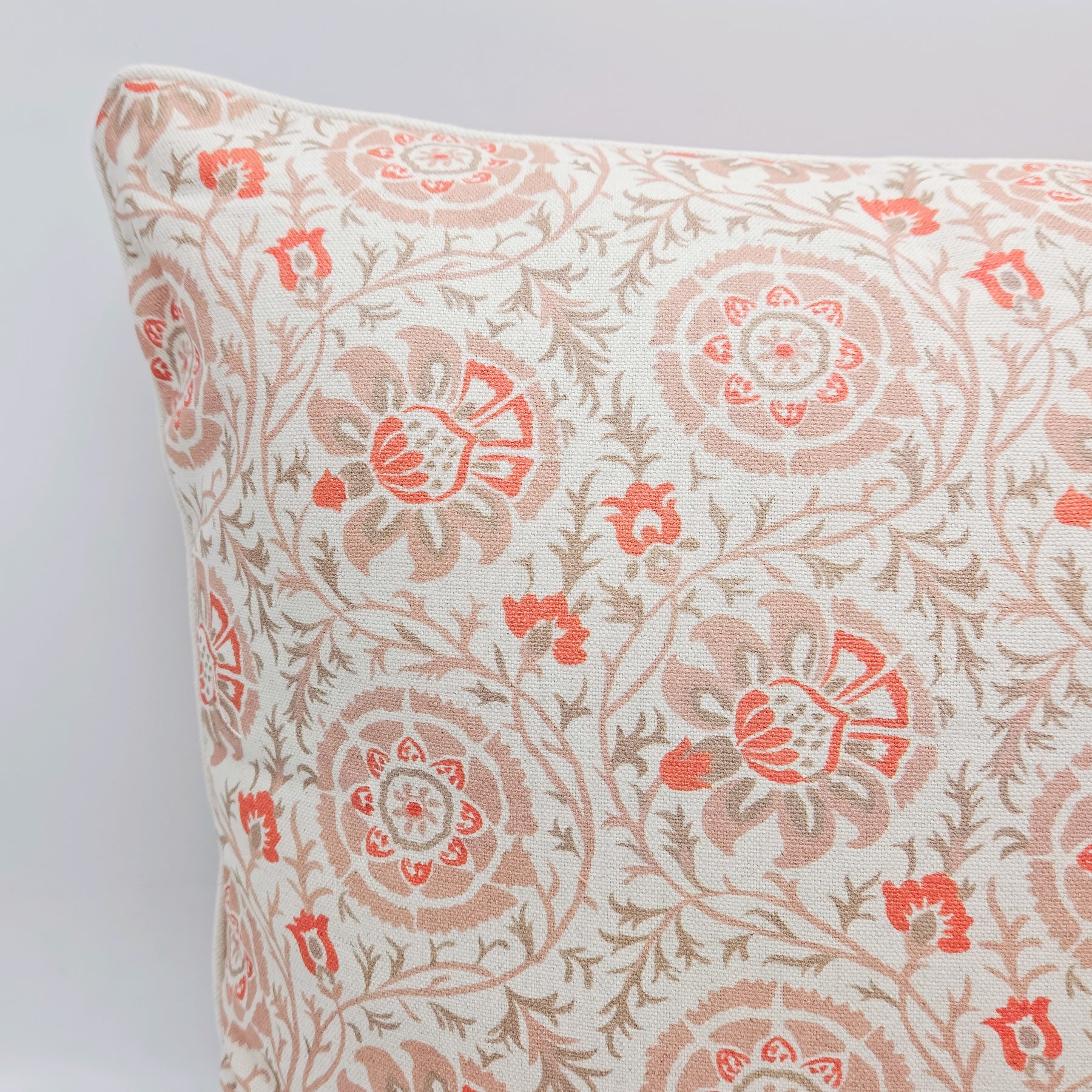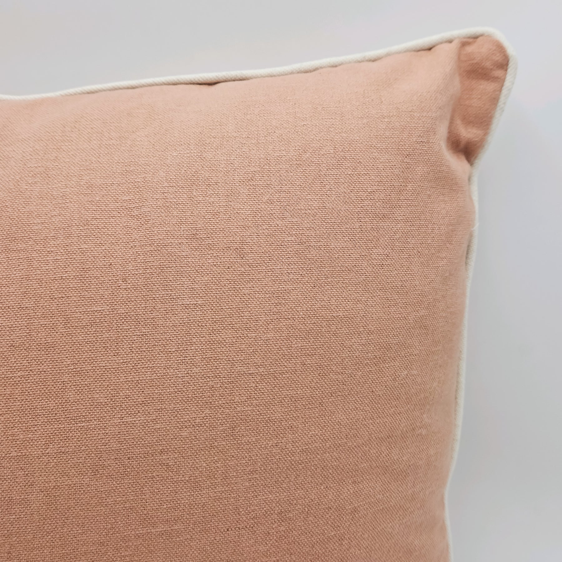 Con un aire artesanal y natural, este cojín de lino de 45x45 cm combina diseño y versatilidad en una sola pieza. Una de sus caras luce un delicado estampado floral en tonos rojizos y tierra que aporta frescura y encanto, mientras que la otra presenta un tono liso terracota que transmite calidez y equilibrio. Su tejido de lino natural añade textura y un acabado atemporal que viste cualquier espacio con sencillez elegante.