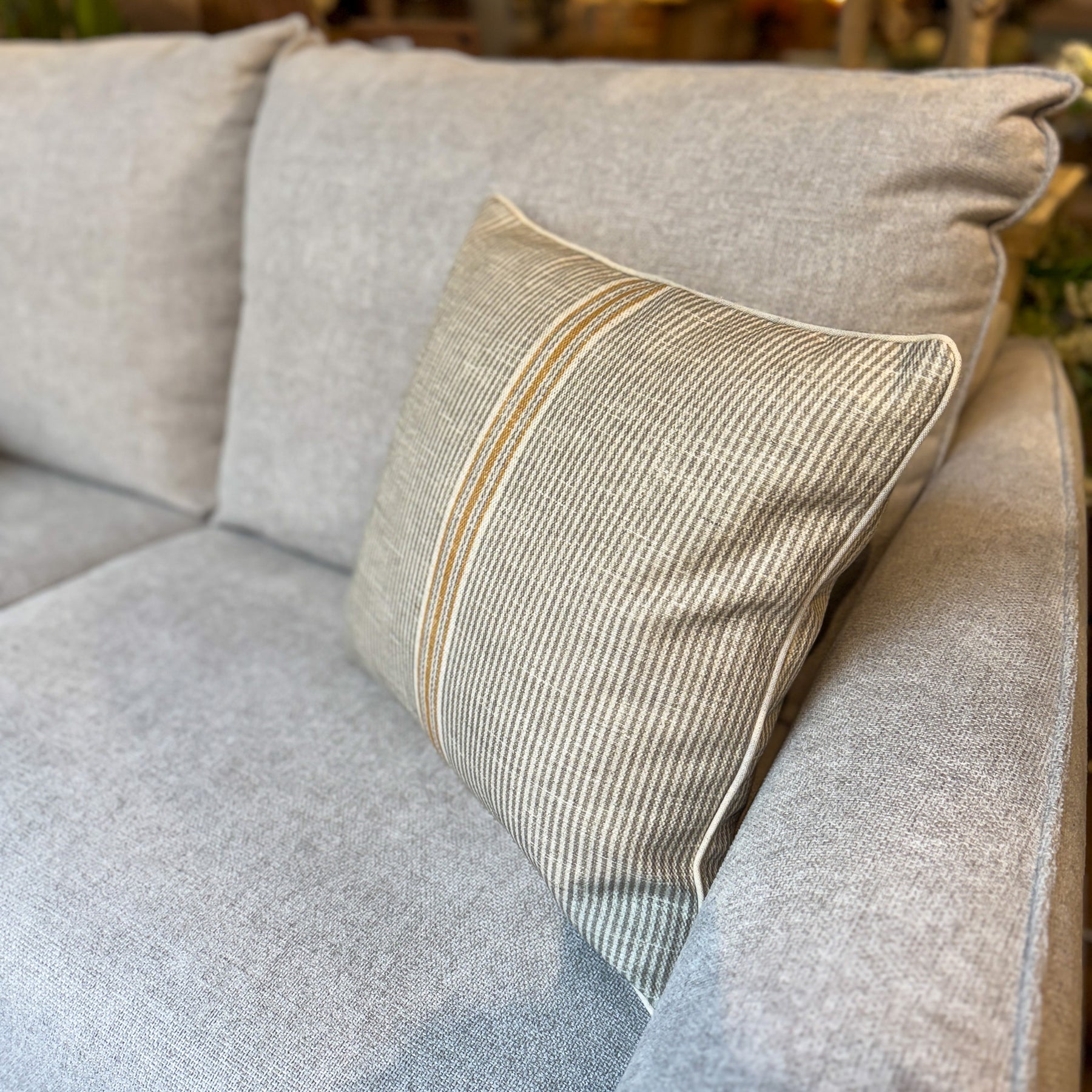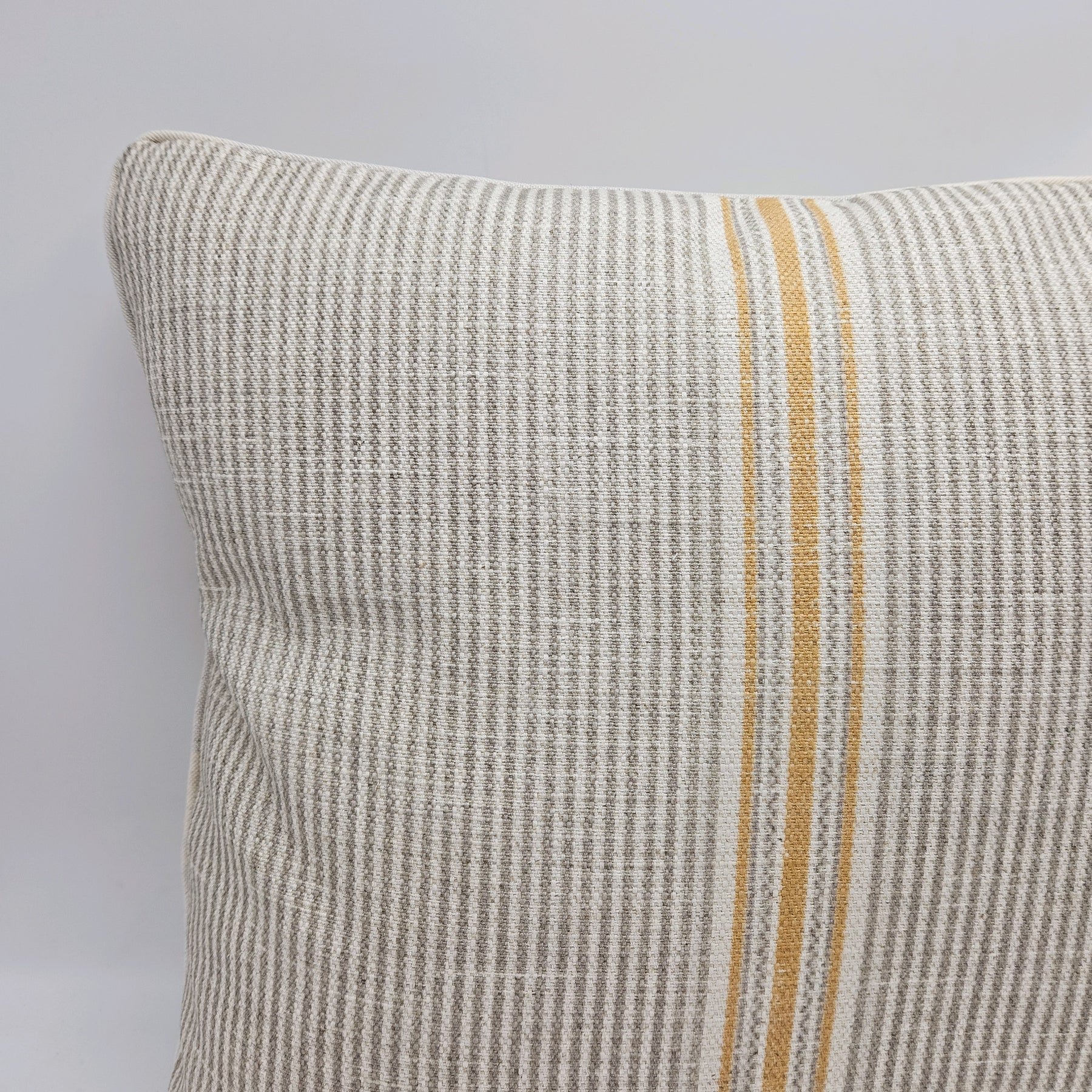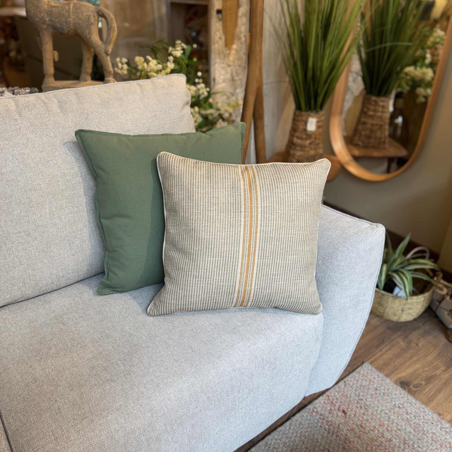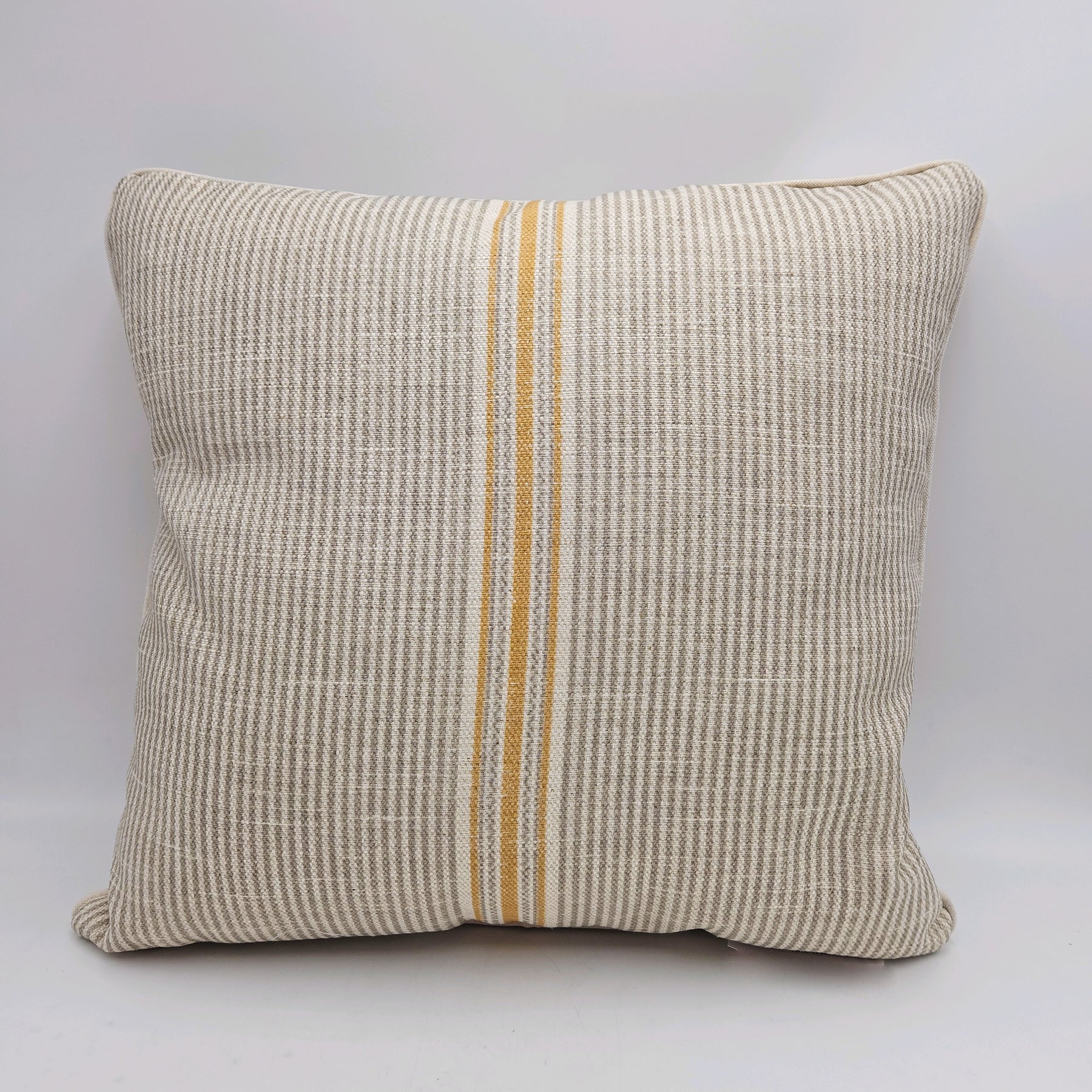 Este cojín de lino con rayas mostaza de 50x50 cm es la opción perfecta para añadir calidez y textura a tu hogar. Su diseño destaca por un patrón de finas líneas verticales en tonos neutros y una franja central en color tierra, una paleta que transforma la atmósfera de tu sofá o dormitorio. Este contraste sutil lo hace muy versátil, funcionando tanto en ambientes nórdicos como en decoraciones rústicas o mediterráneas.