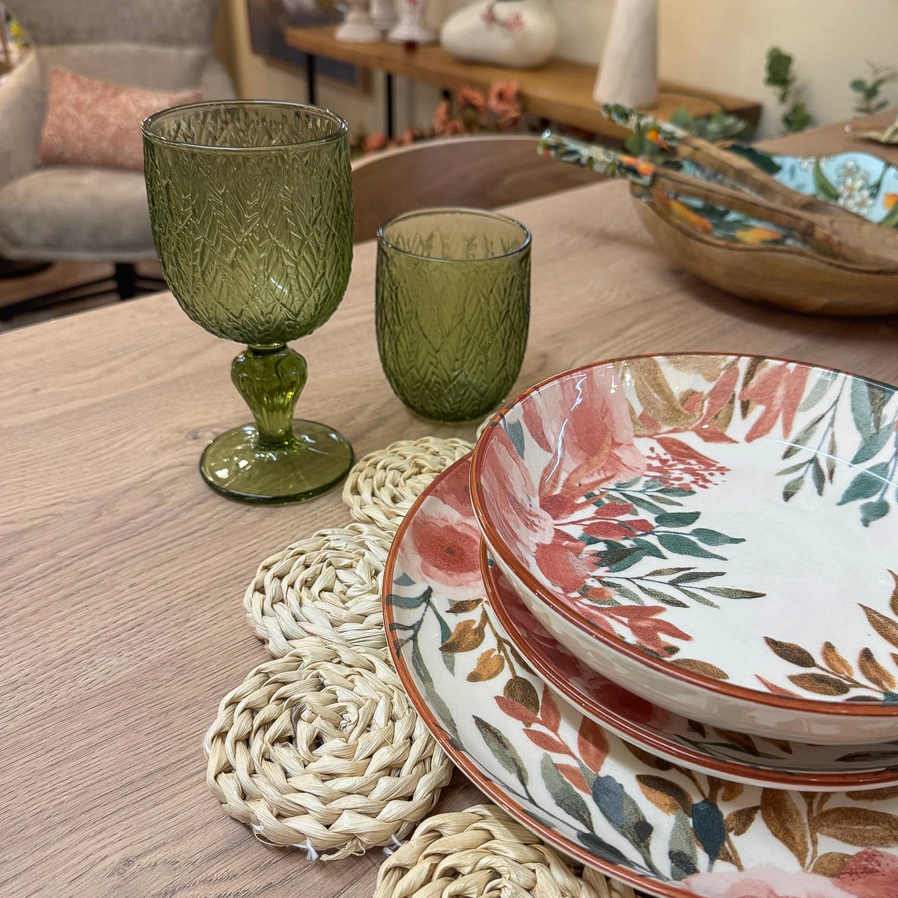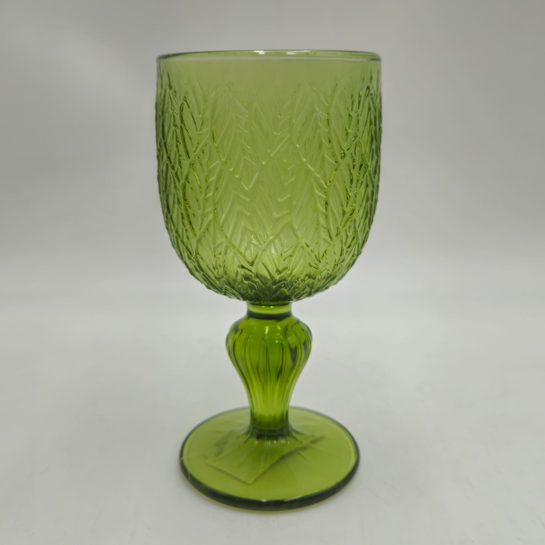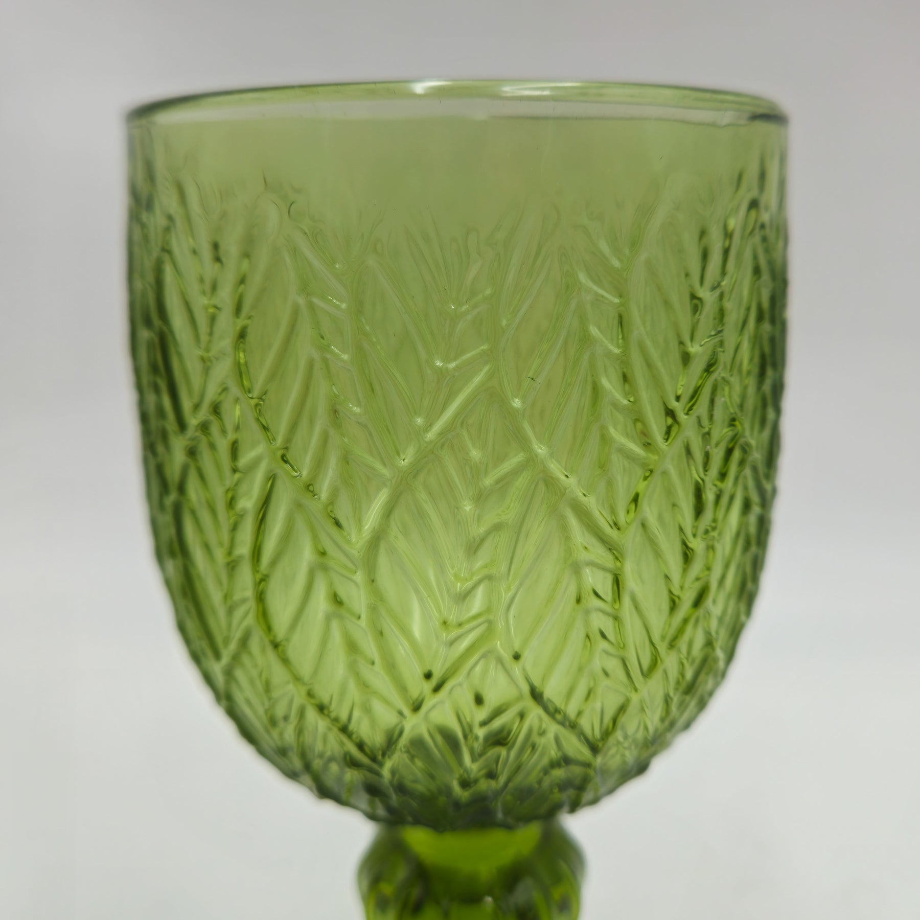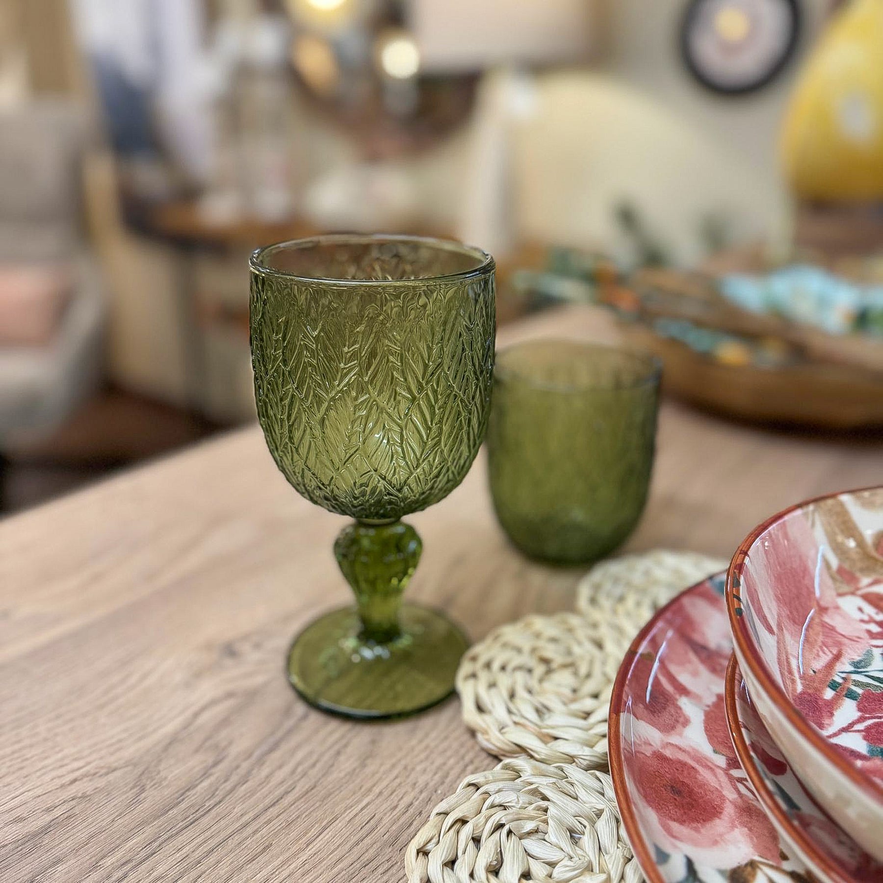 El color y la textura se fusionan en esta copa verde para crear una atmósfera sofisticada que evoca frescura y naturaleza. Esta copa de cristal verde labrada es una oda al detalle, con un cáliz ornamentado en relieve botánico que descansa sobre un tallo torneado de gran estabilidad. Con unas dimensiones de 8x8x14,5 cm, su estructura sólida y su grosor superior garantizan una durabilidad excepcional sin renunciar a una estética clásica que se convierte en el centro de todas las miradas.
