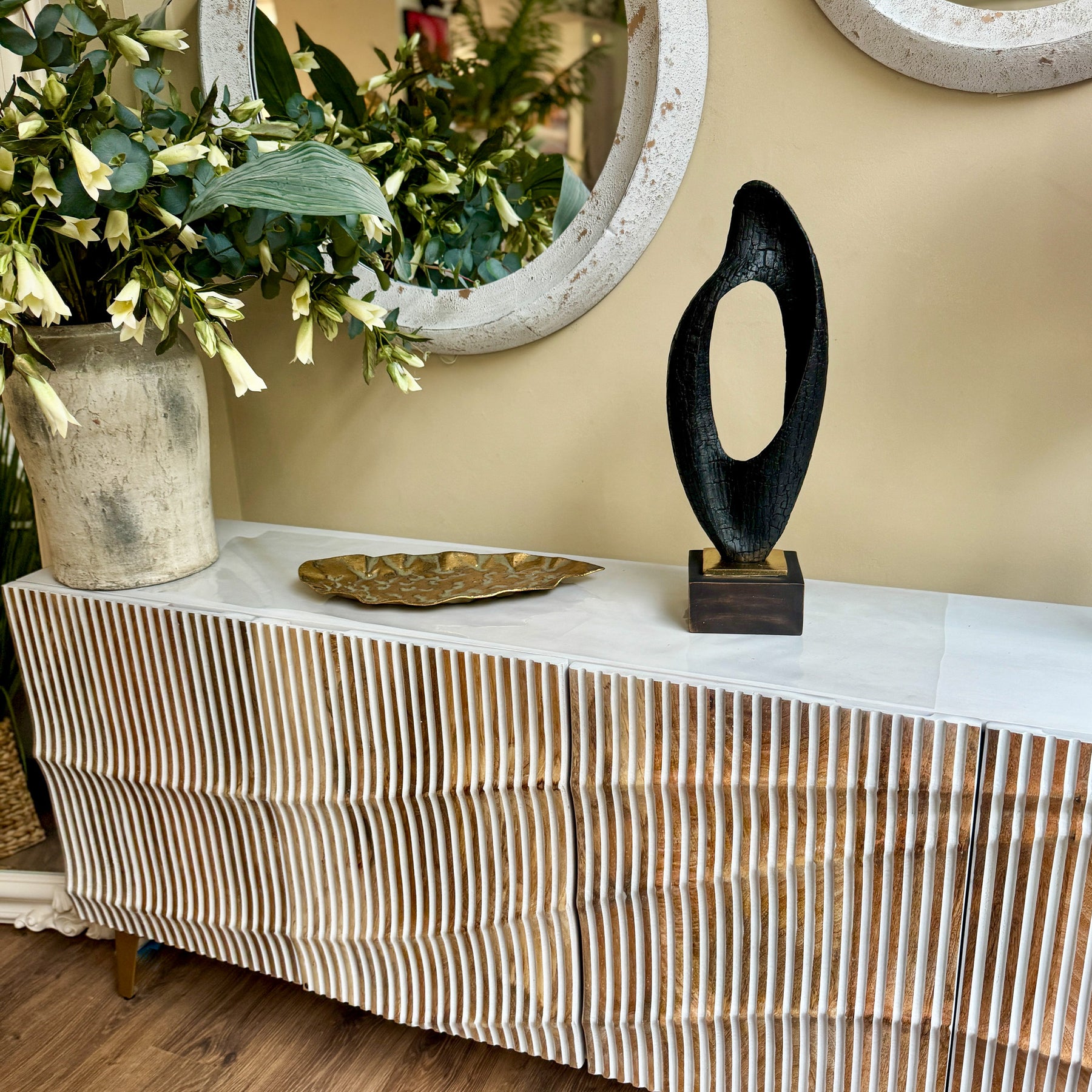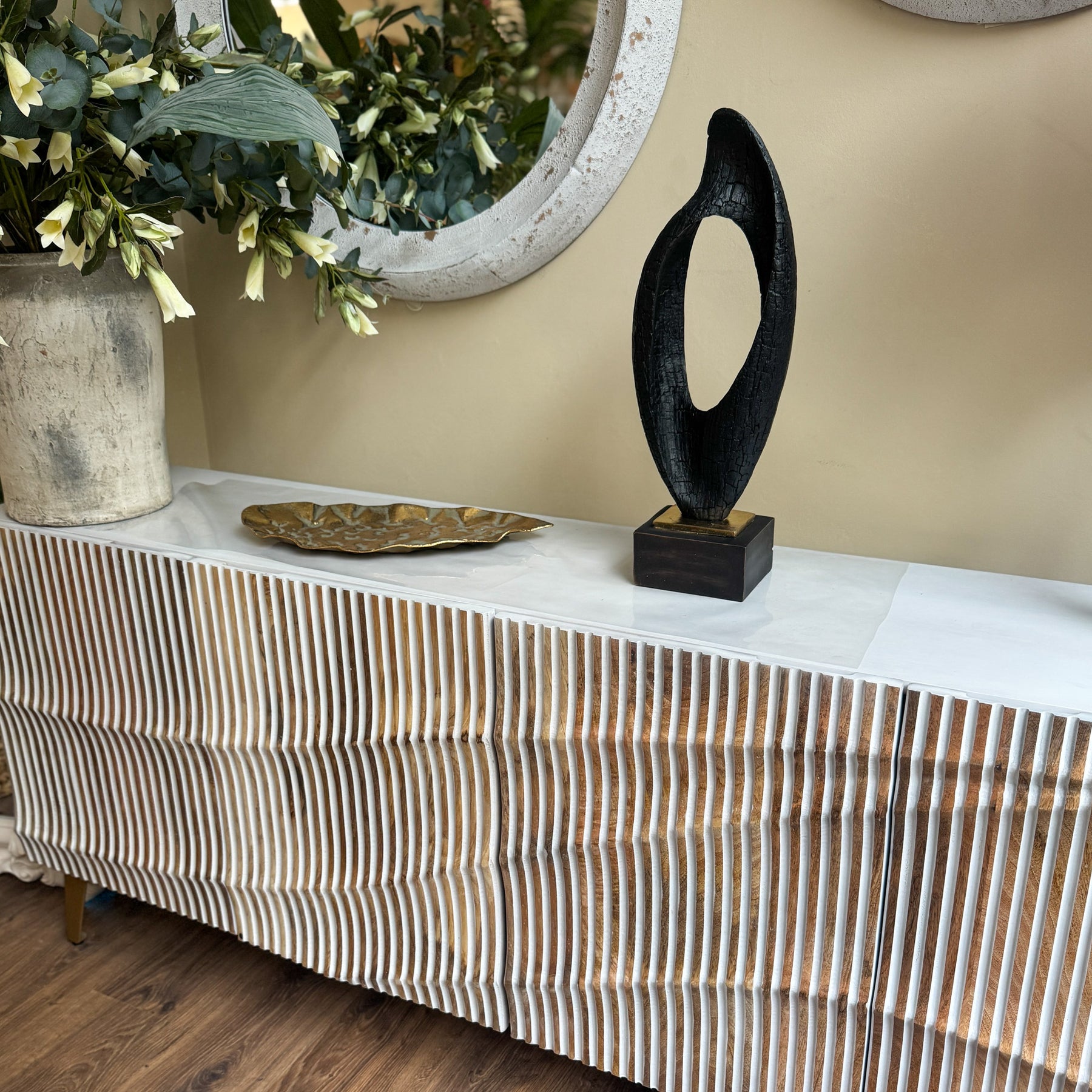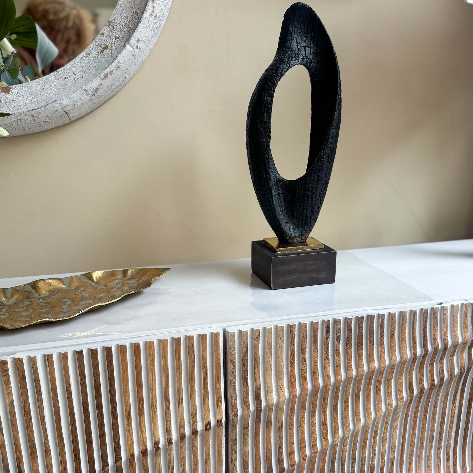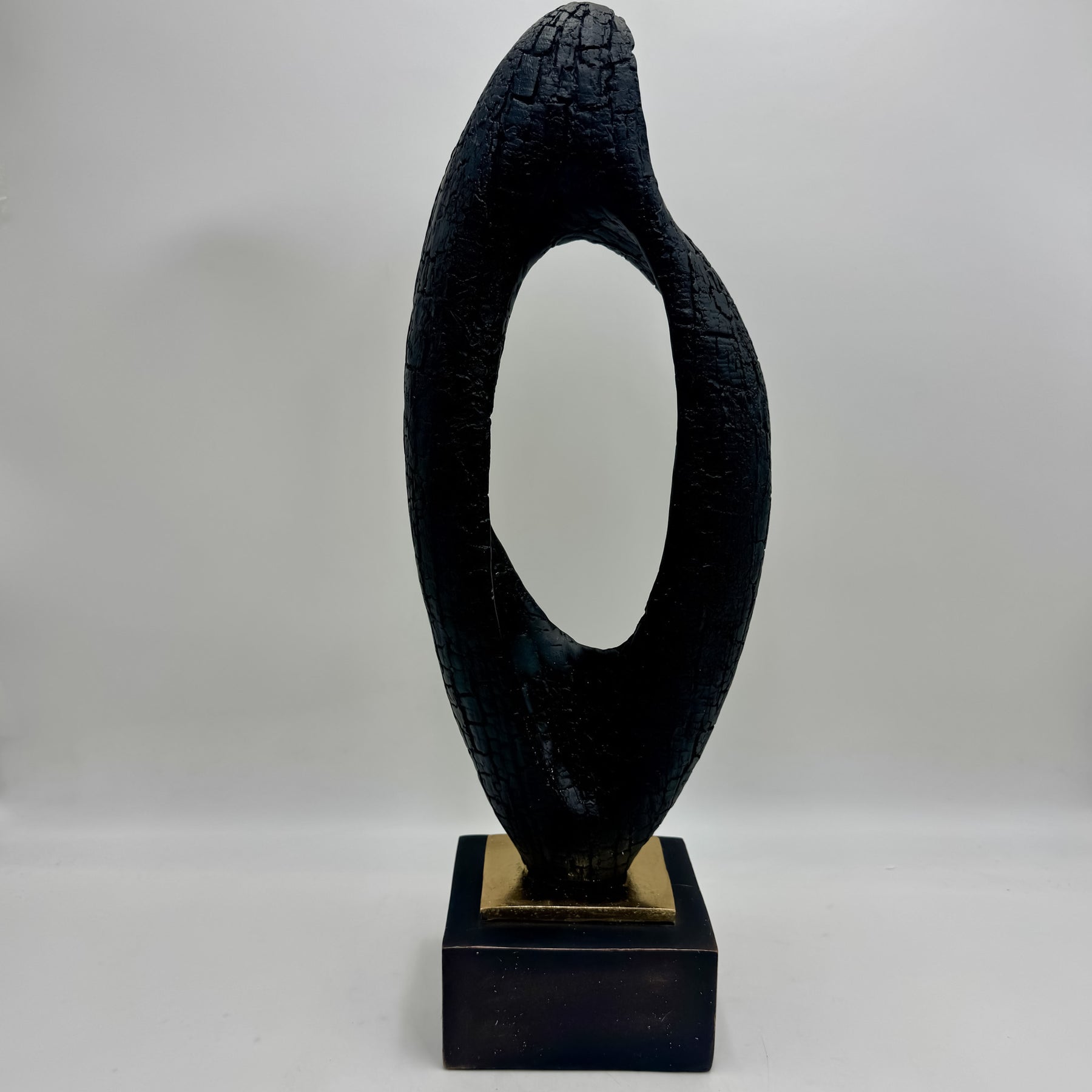 Escultura negra y dorada efecto madera 18x12x50 cm