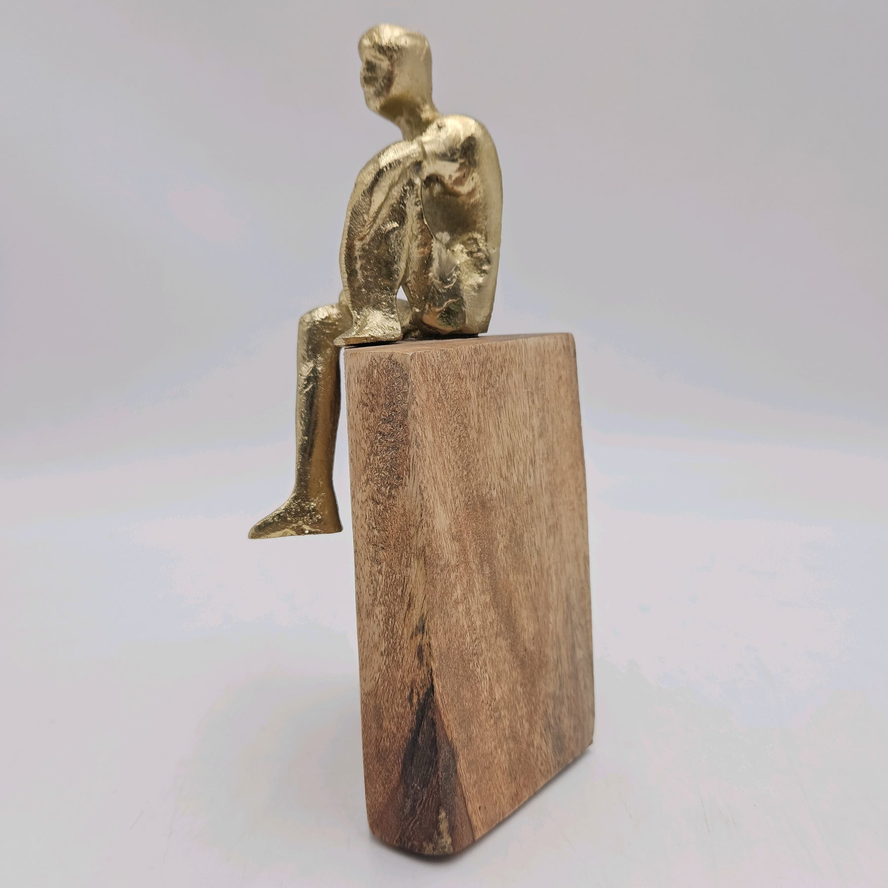 Llena de personalidad tu hogar con esta figura de persona dorada fabricada en madera de mango natural y aluminio. Una figura decorativa dorada que añadirá un toque moderno y sofisticado lleno de estilo. Sus dimensiones de 10x10x20 cm la hacen perfecta para cualquier estancia y ambiente: recibidor, salón, pasillo... tú eliges.