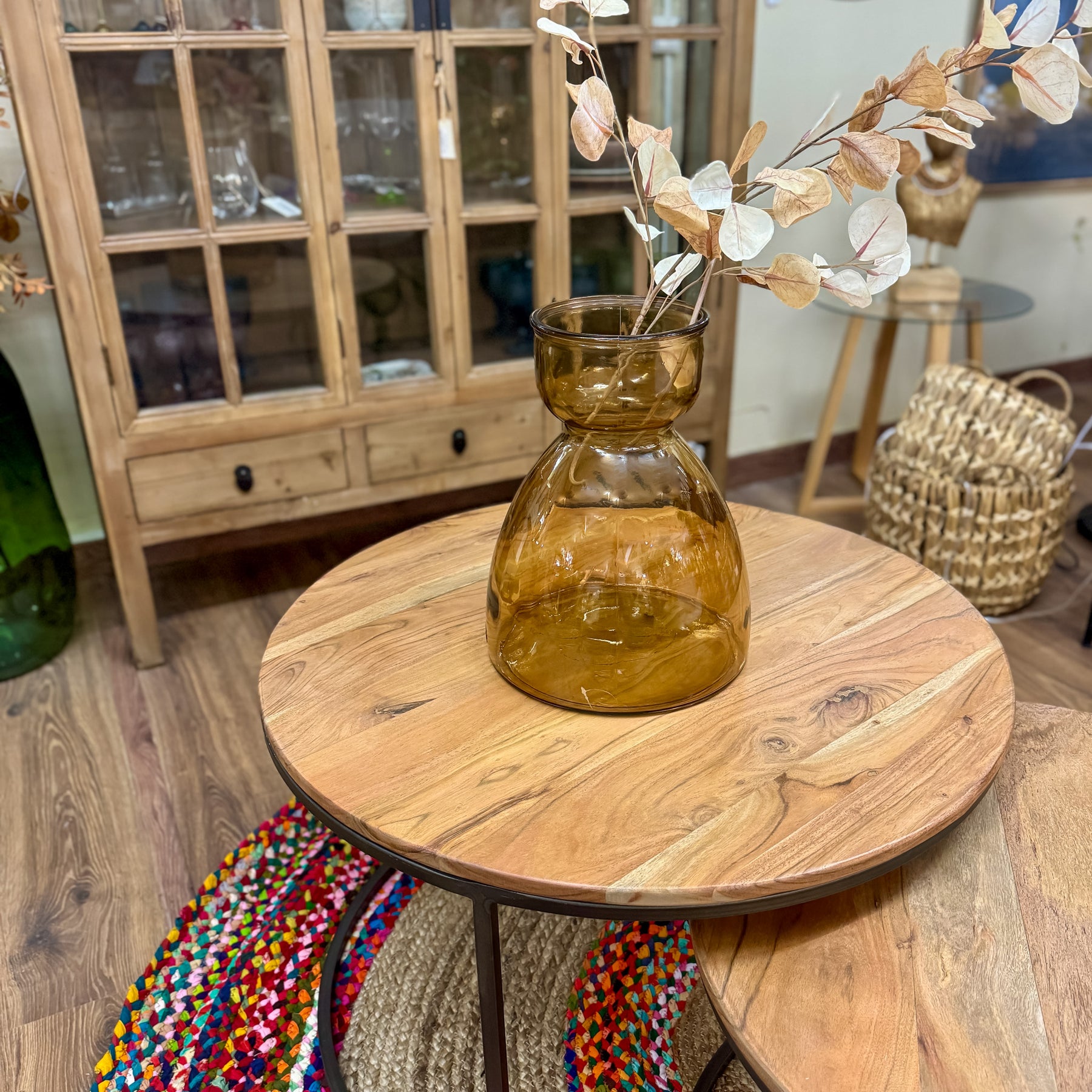 Con un estilo vintage y un diseño original, el jarrón Obel de 16x34 cm tiene una forma muy sofisticada y elegante. Este jarrón de vidrio reciclado en color ámbar es una pieza decorativa que combina sostenibilidad y estilo, jugando con la luz y sus formas orgánicas redondeadas es un jarrón deocorativo ideal para crear ambientes acogedores