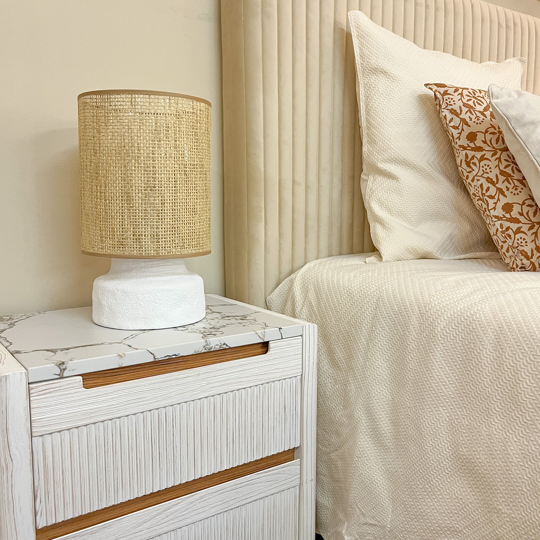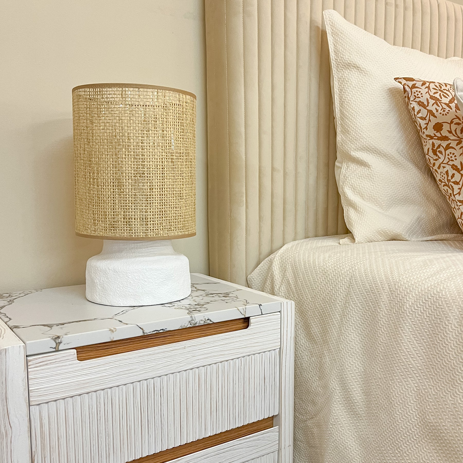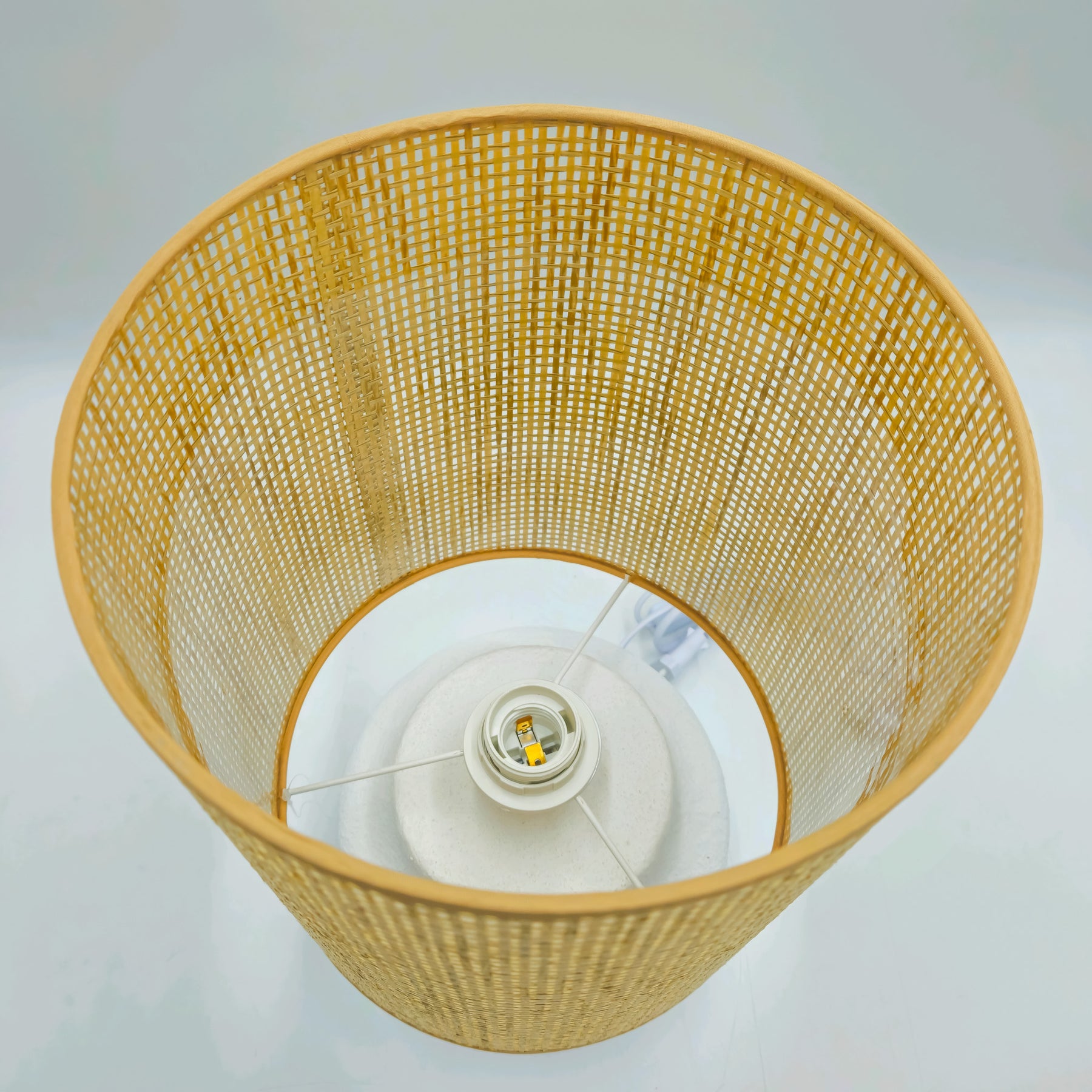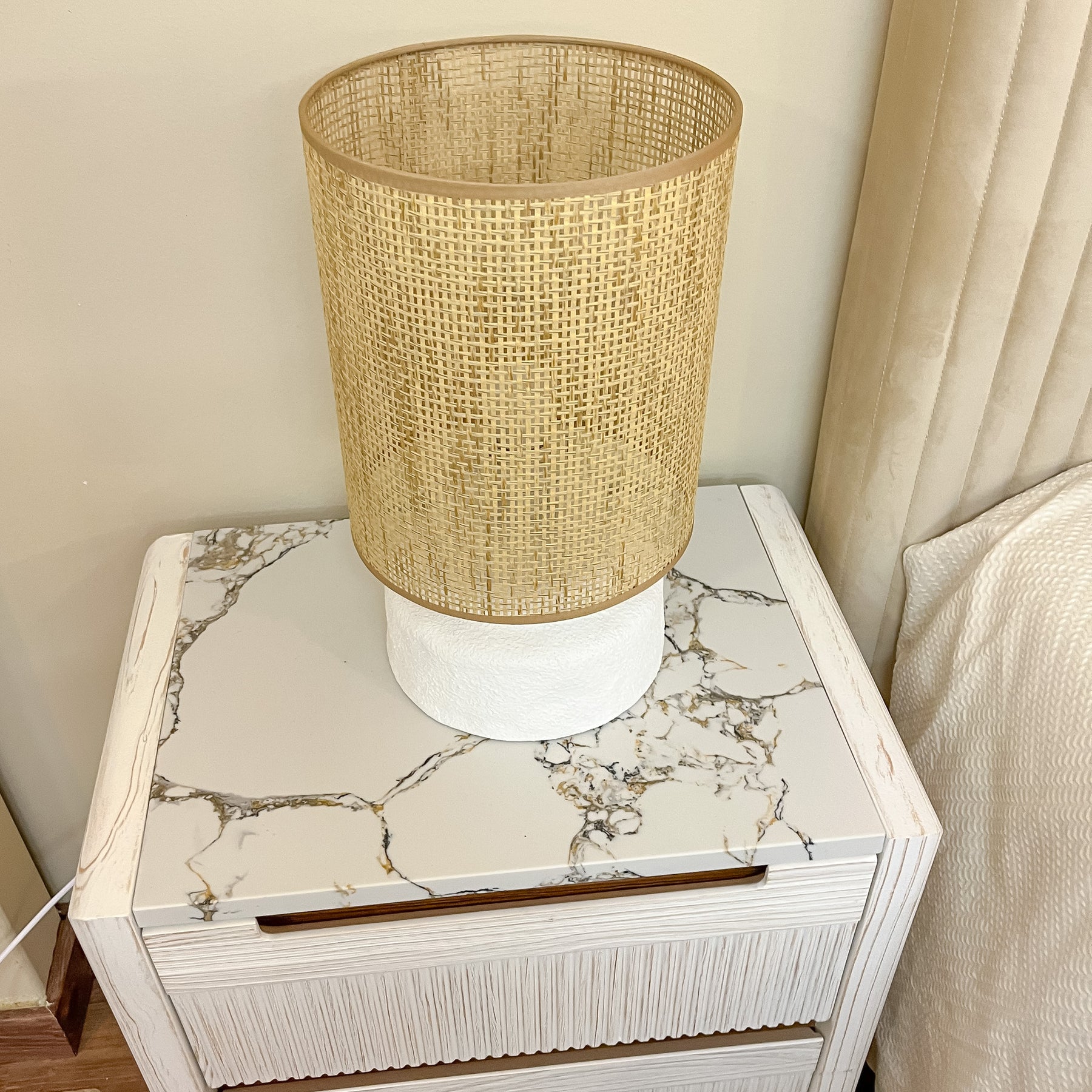 Esta lámpara de sobremesa combina una base de cerámica blanca con una pantalla de fibras naturales, creando una pieza que aporta calidez y estilo a cualquier espacio. Su diseño sencillo y materiales naturales la hacen perfecta para dormitorios, salones o rincones de lectura. Una lámpara de sobremesa de 23x20x39 cm, ideal para generar una iluminación suave y acogedora, convirtiéndose en un complemento decorativo funcional y versátil.