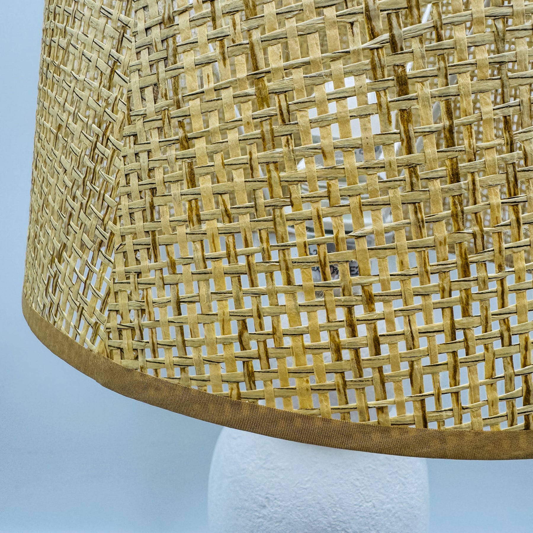 Esta lámpara de mesa de 57cm destaca por su base de estuco texturizado y pantalla de fibras naturales, un diseño que aporta calidez y un toque rústico a cualquier ambiente. Su estilo natural y sencillo la convierte en un complemento versátil, ideal para crear espacios acogedores y con personalidad. La combinación de materiales orgánicos y el tono neutro de la base la hacen perfecta para decoraciones bohemias, mediterráneas o nórdicas. Disponible también en tamaño de 32 cm.