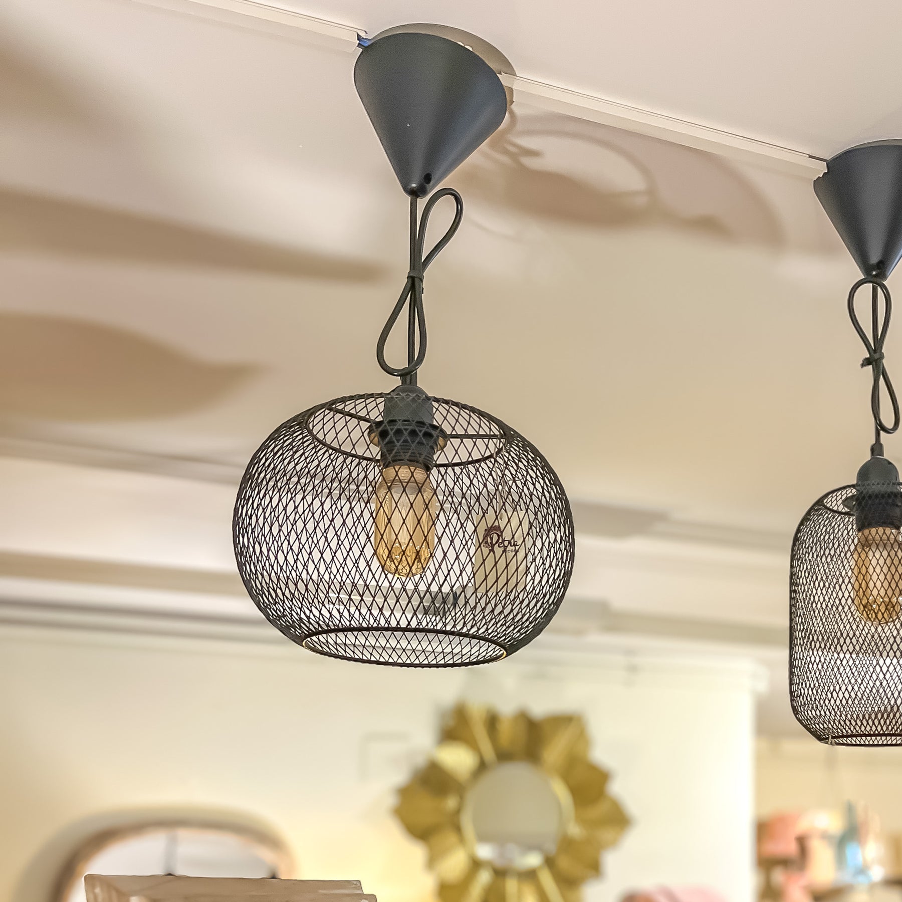 Una lámpara de techo de metal moderna y actual con la que decorar tu hogar. Una lámpara de techo negra de metal con rejilla y forma redondeada ideal para cualquier espacio: salón, dormitorio, entradita... Combínala con la otra lámpara de techo negro metal rejilla para decorar a la vez que iluminas.