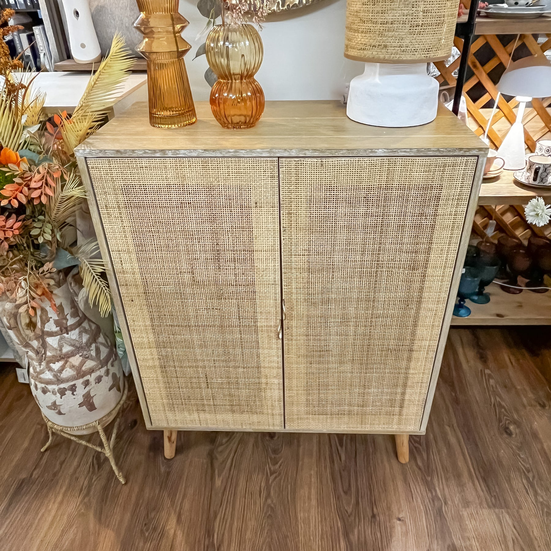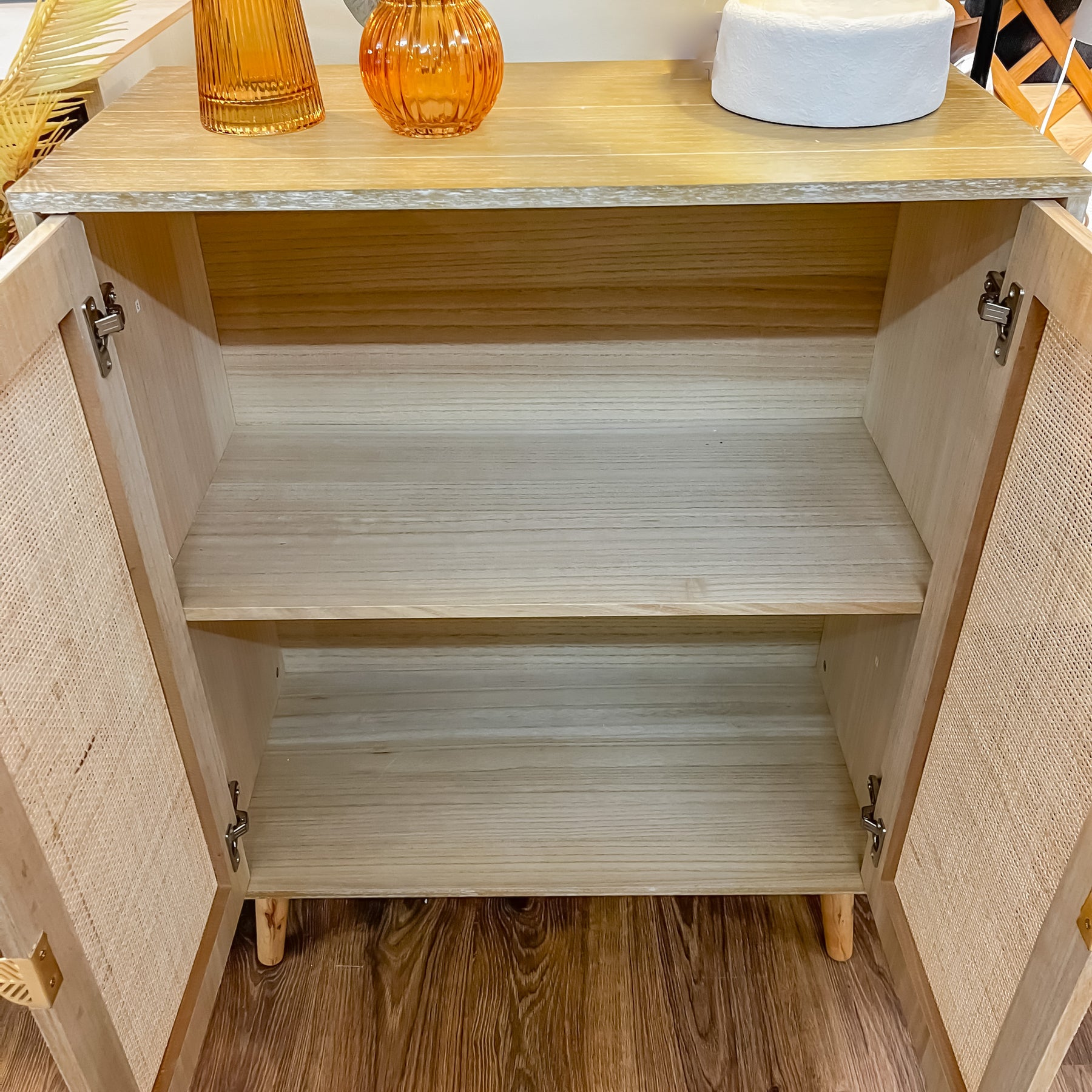 Gracias a su fondo de 30 cm, se convierte en el aliado perfecto para esos rincones difíciles de la casa. Está especialmente pensado para vestir recibidores estrechos o pasillos largos donde necesitas superficie de apoyo y almacenaje, pero sin entorpecer el paso. Sus patas cónicas de madera elevadas facilitan la limpieza y aumentan la sensación de amplitud, mientras que su interior te ofrece la capacidad necesaria para mantener el orden, ya sea como zapatero en la entrada, mueble de apoyo en el comedor o pieza decorativa en el salón.