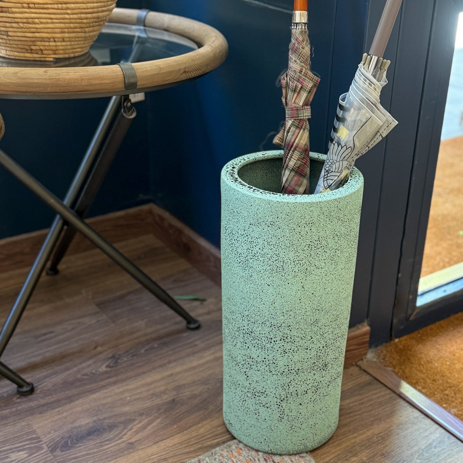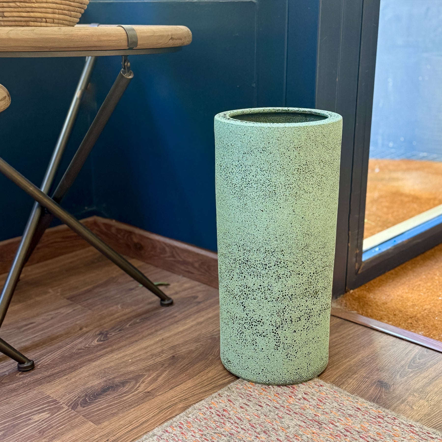 Con su diseño envejecido en tono verde aguamarina este paragüero de cerámica aporta un toque artesanal y elegante a la entrada de tu hogar. Su acabado texturizado envejecido crea una sensación original desde el primer vistazo.