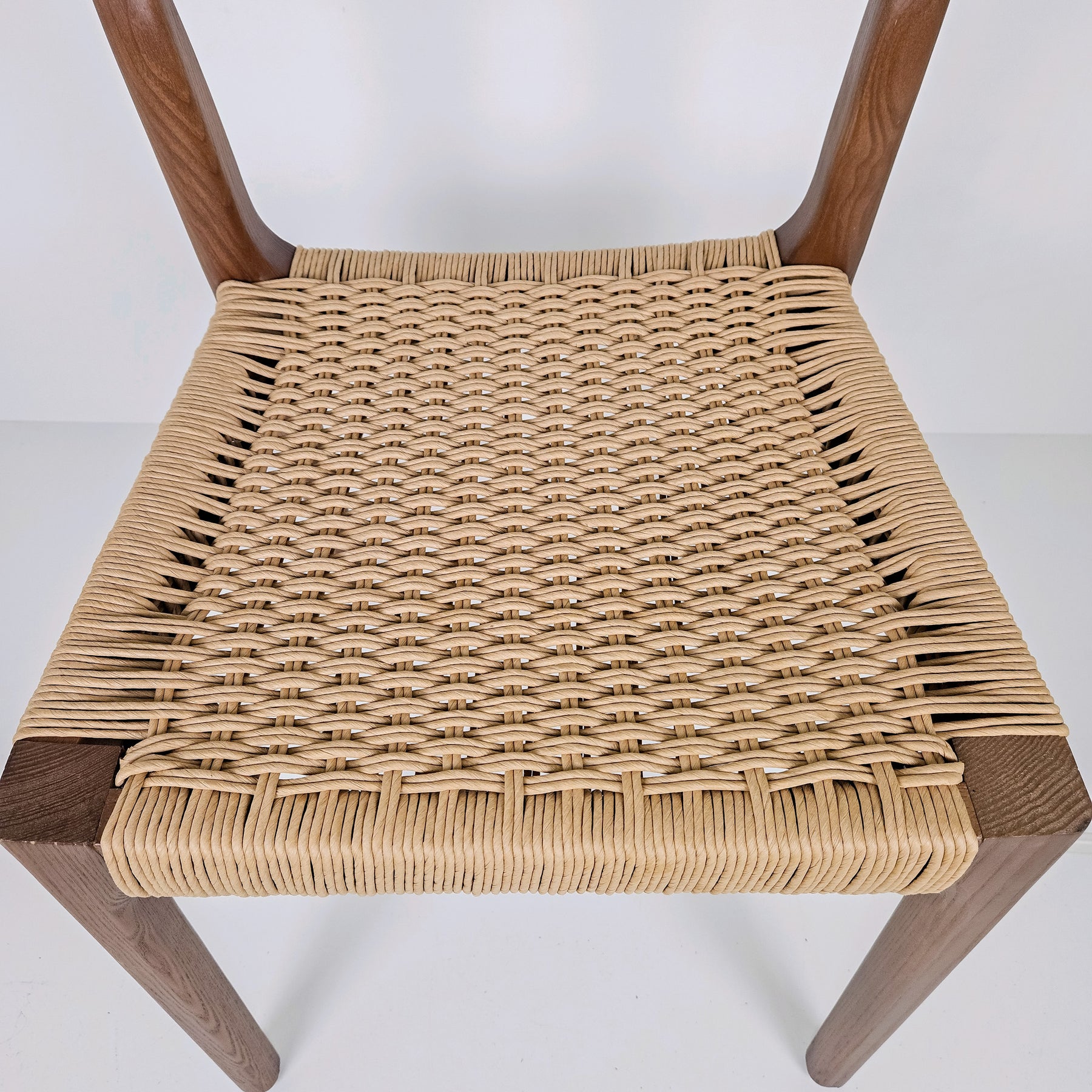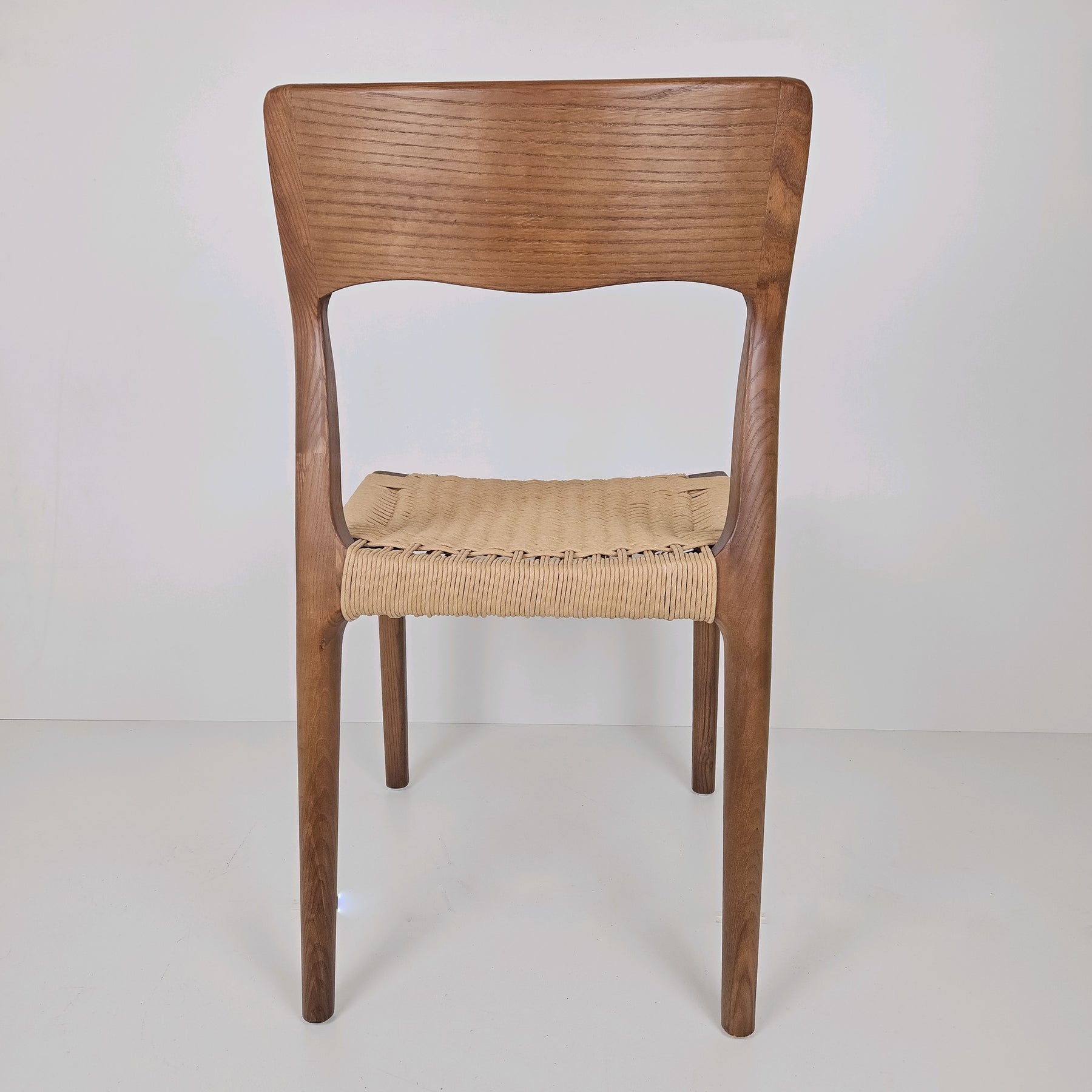 Esta silla de madera combina la elegancia del fresno y el nogal con la calidez de la artesanía tradicional. Su diseño limpio y atemporal se realza con un asiento trenzado a mano que aporta textura y confort, convirtiéndola en una pieza única y llena de carácter.