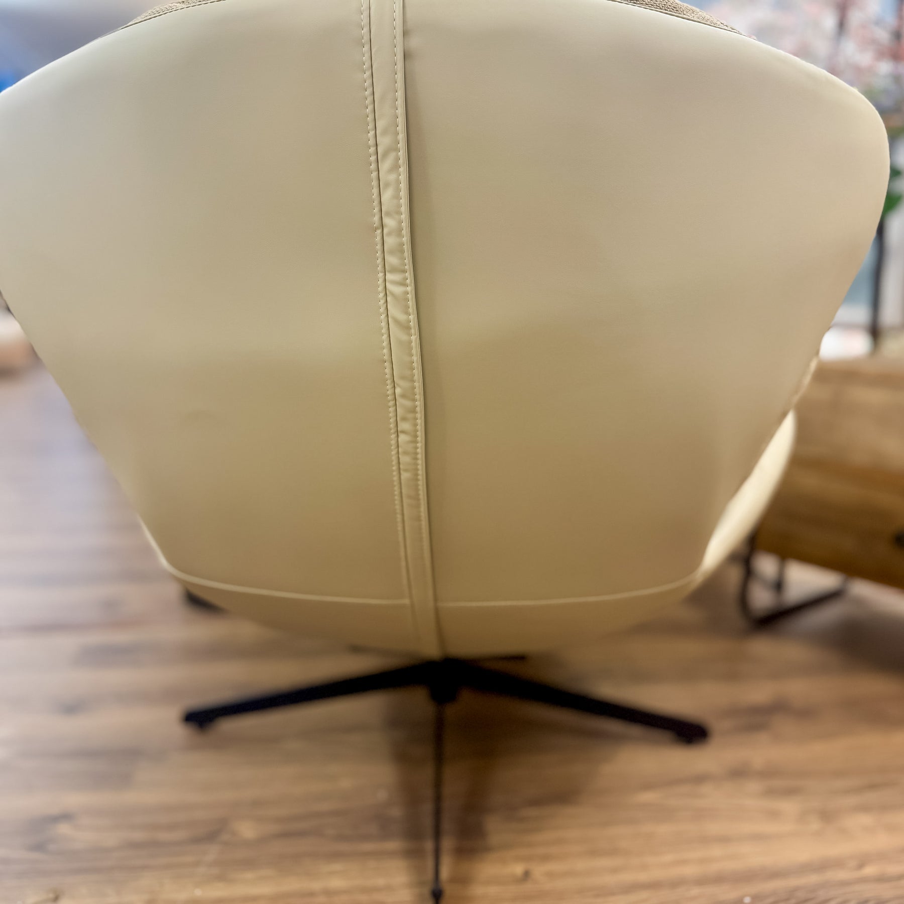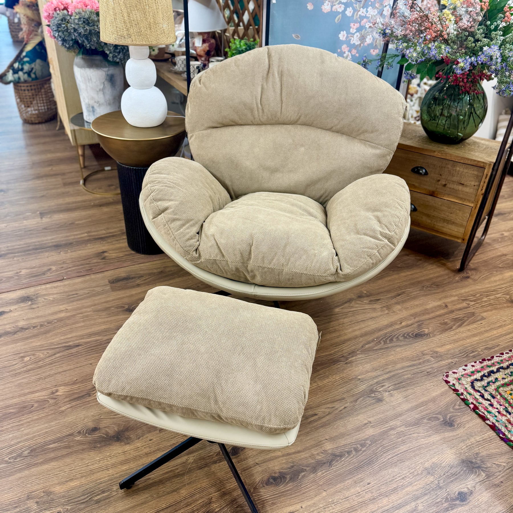 Con unas medidas de 90x98x100 cm, este sillón giratorio ofrece libertad de movimiento y una postura cómoda en cualquier ángulo. Su asiento mullido y sus brazos acolchados lo convierten en una pieza ideal para desconectar después del día o para disfrutar de una buena lectura. Si buscas un plus de confort, puedes añadir el reposapiés a juego, disponible por separado.